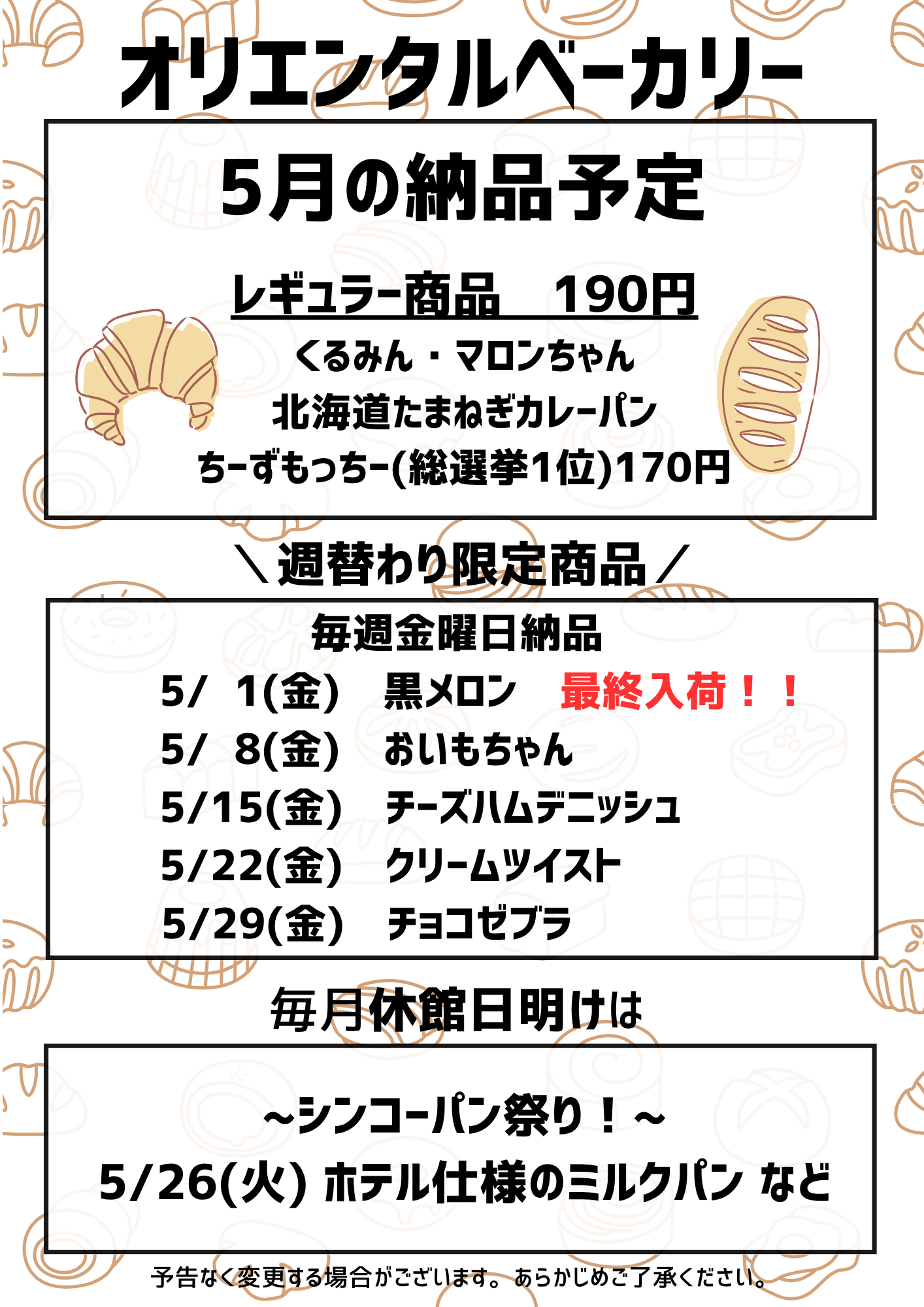 ▶☆4月パン販売スケジュール【毎週金曜日と月末休館日明け】